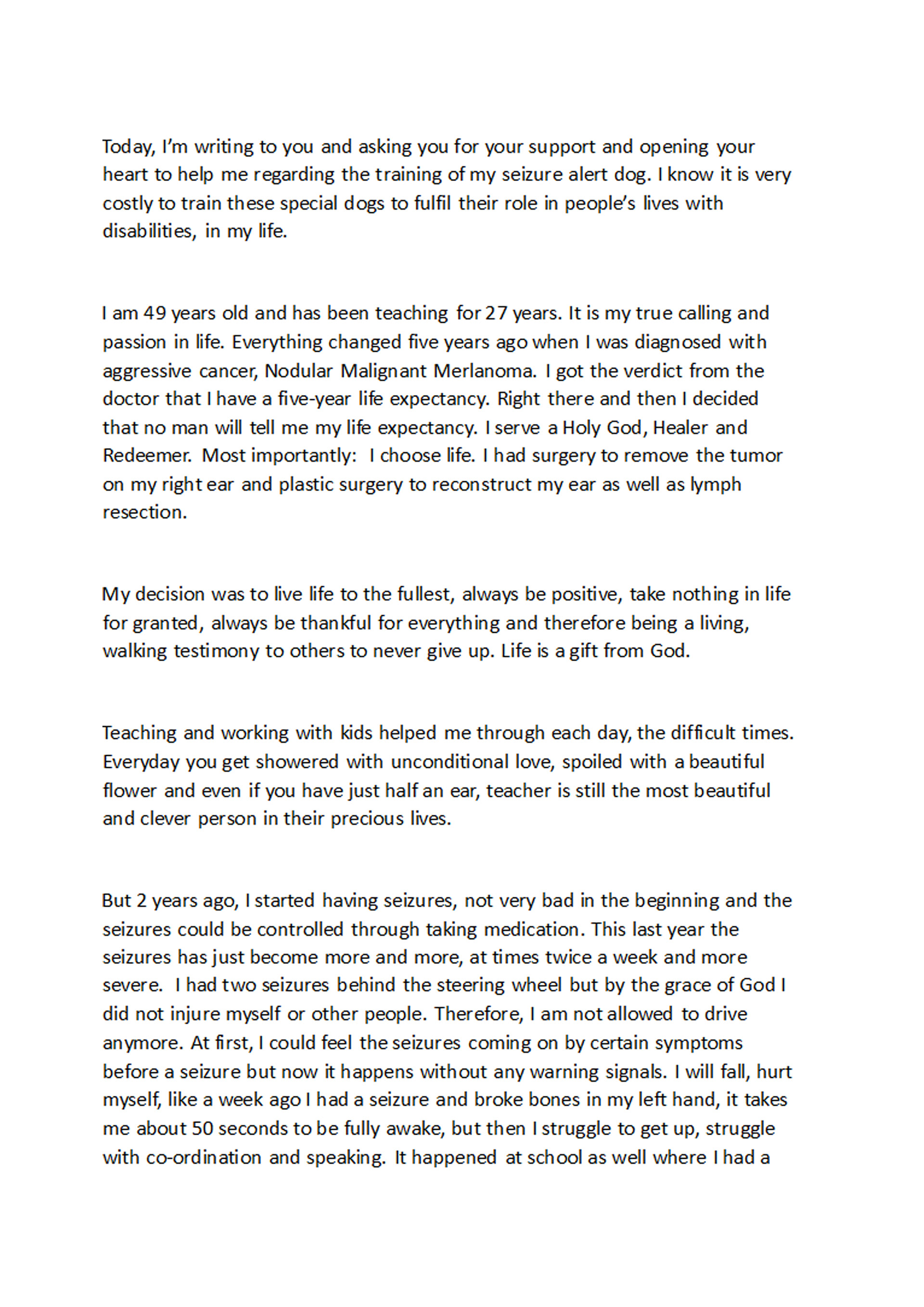 Every day people across South Africa are busy raising money so that they or their children can have a Medical Service Dog that could change their lives.